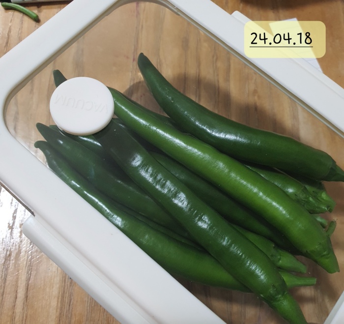 24일 동안 보관한 대파와 풋고추